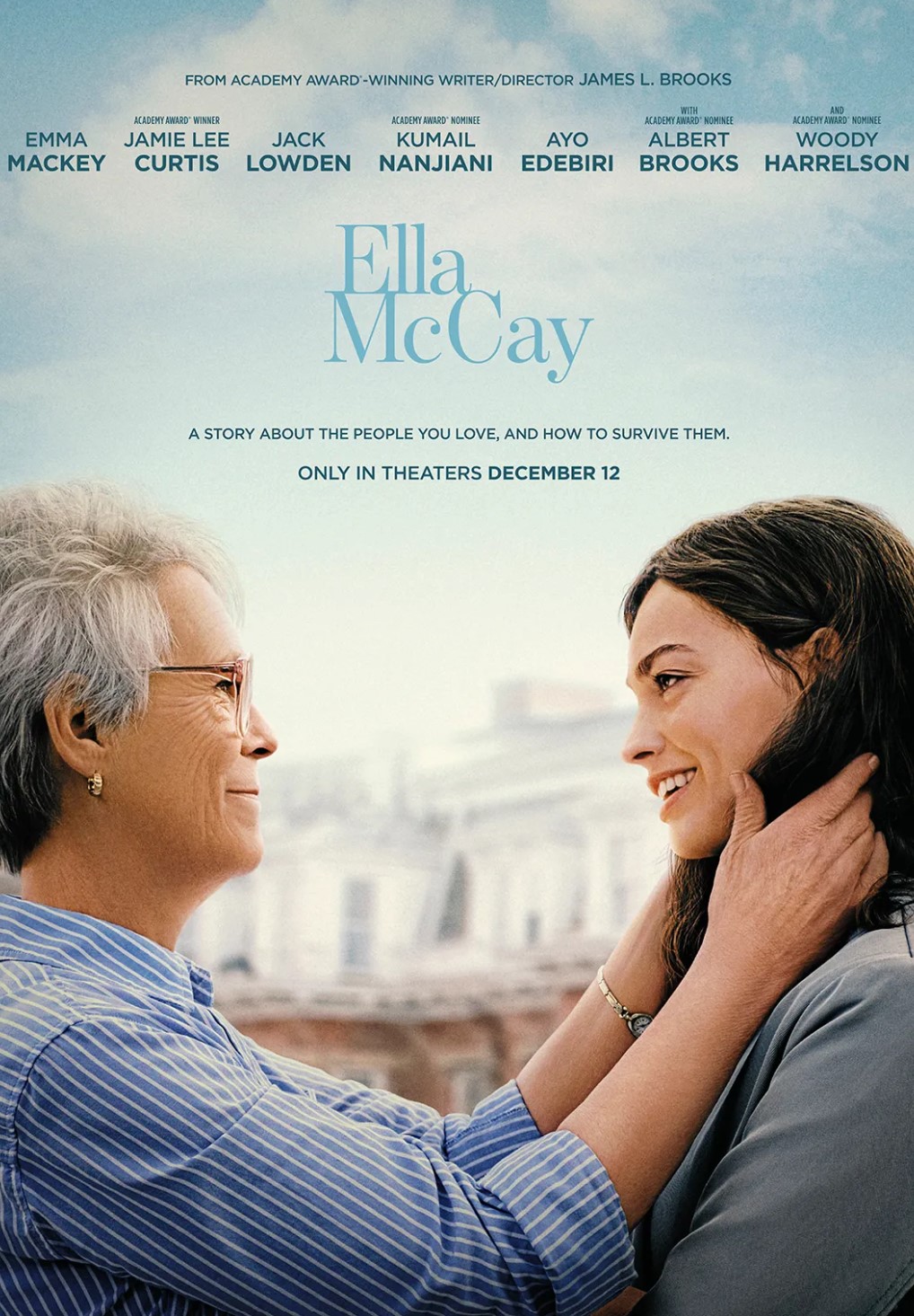 Despite the surprise narration by Julie Kavner (voice of Marge Simpson), the highlight of this breezy film is Emma Mackey as Ella McCay. She plays a high-strung lieutenant governor who is promoted to governor when her predecessor, Bill Moore (Albert Brooks, no relation to James L. Brooks), vacates the position for a federal cabinet posting. Mackey is in almost every scene in the movie, and balances the comedy and heartfelt moments really well. Her comedic highlights involve her unknowingly consuming marijuana at her brother’s place (Casey McCay, played by Spike Fearn), and going on about a dental program under the colloquial name of “Tooth Tutors,” and Mackey’s comedic wide-eyed looks of shock and stress. Hopefully, Mackey gets more lead opportunities after this role, as she proves in this movie that she can carry a film.